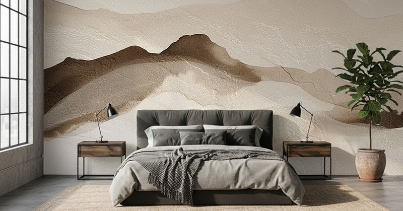 Piaskowe wzgórza, akcenty ciepłego brązu, wyraźna tekstura przypominająca glinę albo surowy tynk – to działa. Zwłaszcza w sypialniach od północy, gdzie światło bywa zimne i wszystko wydaje się bardziej szare niż w rzeczywistości jest. Ciepłe beże dogrzewają wnętrze bez konieczności malowania ścian na mocny kolor (czego potem i tak się żałuje, nie oszukujmy się).