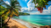 Fototapeta Na pięknej plaży, otoczonej palmami, turkusowe morze błyszczy w słońcu, tworząc niezwykłą panoramę.