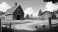 Fototapeta A vibrant farm scene featuring red barns, a dirt path, and lush greenery under a blue sky.