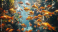 Fototapeta A vibrant underwater scene filled with goldfish swimming among aquatic plants and bubbles.