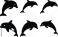 Fototapeta A group of stylized black silhouette dolphins swimming in a playful manner