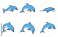 Fototapeta Set of cartoon blue dolphin in various poses swimming on background