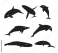 Fototapeta Silhouettes of different marine animals, including dolphins, sharks, and a whale, in dynamic poses.