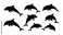 Fototapeta Silhouette depictions of several playful dolphins leaping and swimming in water