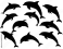 Fototapeta Black dolphin silhouettes on a white background, in various poses