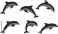 Fototapeta Pixel Art Dolphins Jumping In Blue And Black With White Background