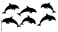 Fototapeta Several dolphins leaping and swimming depicted as a striking silhouette