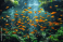 Fototapeta A lively school of bright orange fish swims together in a beautifully maintained aquarium setting