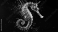 >Fototapety dla DZIECI>Aquatic animals seahorse that swim majestically in oceans and seas. Painted with paint splash technique. Isolated black background. Also for T-shirt printing pattern. Generative AI