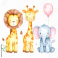 Fototapeta Watercolor Baby Safari Animals – Lion, giraffe, elephant – super popular for baby showers