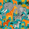 Fototapeta Seamless pattern with cute african animals. Elephant, leopard, giraffe, zebra and crocodile. Vector illustration in flat style.