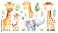 Fototapeta Watercolor safari animals, charming baby giraffes, adorable zebra, cute elephant