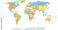 Fototapeta Światowa mapa państw pojedynczych z granicami państwowymi. Każdy obszar kraju z własnym kolorem. Ilustracja na białym tle pod projekcją Robinsona. Etykietowanie w języku angielskim.