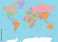 Fototapeta Colored detailed political world map. Political colored physical topographical map with countries borders, capital cities, islands and water objects names