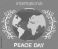 >Fototapety dla DZIECI>fototapety dla dzieci>mapa świata dla dzieci>Peace Day poster with white outlines of tree branches with leaves. Planet with image of symbol of peace and inscription. Land with green continents and blue waters. World globe vector illustration