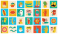 Fototapeta Big Set of Different colored Vector illustartion posters in Cartoon Flat design. Hand drawn Abstract shapes, funny Comic characters.