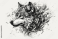 Fototapeta A striking black and white illustration of wolfs head, surrounded by intricate tribal flames and swirling patterns, evokes sense of wild beauty and strength