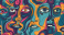 Fototapeta Seventies Psychedelia Cartoon Faces – Abstract Background Design