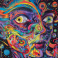 Fototapeta Vibrant abstract art depicting a surreal face with colorful patterns and elements set against a dark background