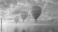 Fototapeta Three Hot Air Balloons Floating Over a Calm Ocean at Sunset - Illustration
