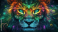 Fototapeta Vibrant Abstract Lion Portrait with Colorful Swirls and Intense Glowing Eyes in a Mystical Artistic Style