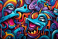 Fototapeta Vibrant Graffiti Shapes and Lines Wallpaper, Abstract Graffiti Wallpaper, Graffiti Background, AI Generative