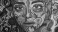 Fototapeta Vibrant colorful abstract portrait of a woman's face with bold features and psychedelic patterns.