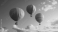 Fototapeta Three hot air balloons soar, pastel sky.