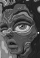 Fototapeta A woman with a very colorful face with a blue eye. The painting is very colorful and has a lot of detail