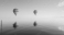 Fototapeta Two colorful hot air balloons floating serenely above a calm, reflective ocean at dawn