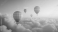 Fototapeta dreamy image of balloons floating serenely in the air, surrounded by soft clouds and the bright morning sky.