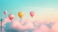 Fototapeta Colorful hot air balloons soar above pastel clouds at sunrise; travel, freedom concept