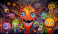 Fototapeta A surrealist nightmare unfolds in a vibrant, grotesque painting featuring bizarre creatures.