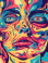Fototapeta Psychedelic retro cool digital artwork. Colorful doodle human face eyeball design, 70s vintage style vivid dreamscape pop art