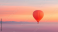 Fototapeta Vivid Red Hot Air Balloon Ascending Over Pastel Sunset Scenery