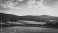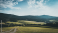 Fototapeta Field with a Path and Mountains with Trees in the background and Clouds on the sunny sky in the bavarian forest