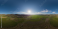 Fototapeta Aerial panorama over a young garden and a green wheat field in the countryside at sunset. Seamless spherical equirectangular 360 degree panorama. Agronomy, industry and food production.