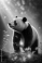 Fototapeta Amazing giant panda bear on sunrise, background blured bokeh