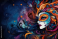 Fototapeta Beautiful girl with fantasy face. Abstract colorful background. Abstract background February 26: Carnival Day or Mardi Gras or Bali Hindu New Year