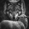 Fototapeta The wolf leader talks with the sheep employee, business concept illustration, the leader and the employee facing fears, hunted.