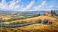 Fototapeta tuscan cypresses, picturesque hills, meandering pathway, and a charming villa illuminated by the typical sunlight in Tuscany, Italy