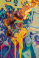 Fototapeta Abstract background wallpaper, A colorful top-down view of an oil slick on water with heat waves around it. The focus is the melting wax. Paint in liquid mixing together.