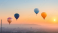 Fototapeta Balloons, floating over a cityscape at sunset, whimsical adventure