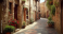Fototapeta A street in a small old town in Tuscany, Italy.