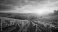 Fototapeta Stunning view of vineyards under a splendid sunset, stretching over rolling countryside hills, capturing the warm orange glow and tranquil beauty of the natural landscape.
