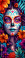 Fototapeta A woman with a flowery headdress and a skull on her face. The skull is surrounded by flowers and the woman's face is painted with flowers