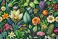 Fototapeta Wildflowers seamless pattern with poppy camomile, cornflower, eryngium, ranunculus, anemone flowers. Hand drawn illustration isolated on white