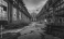 Fototapeta Iraq air pollution, Derelict factory interior with cracked floor, overgrown vegetation, and rusted metal.