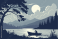 Fototapeta 44 serene lake at night,full moon in the sky,silhouette of a boat on the water,mountains in the background,clouds in the sky,forest around the lake,digital art,highly detailed,intricate,cinematic,soft