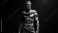 Fototapeta Detailed sculpture of a bearded man with defined muscles, captured with a banner stoic background, representing timeless strength.
